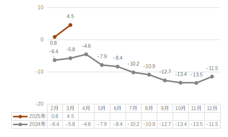 3月,火力发电量68.07亿千瓦时,同比增长7.5%;水力发电量174.50亿千瓦时,同比增长24.5%;风力发电量50.72亿千瓦时,同比下降6.5%;太阳能发电量30.88亿千瓦时,同比增长14.8%。