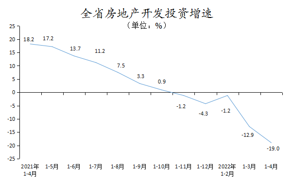1-4月,全省房地产开发投资1041.81亿元,同比下降19.0%;其中,住宅投资783.98亿元,同比下降16.5%。