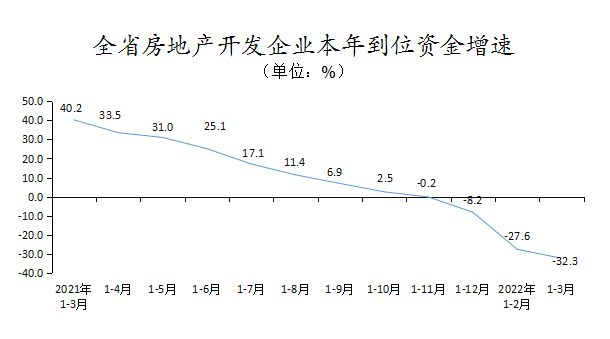 1-3月,全省商品房销售面积692.84万平方米,同比下降25.2%,其中,住宅销售面积下降25.1%;商品房销售额488.58亿元,下降33.3%,其中,住宅销售额下降33.1%。