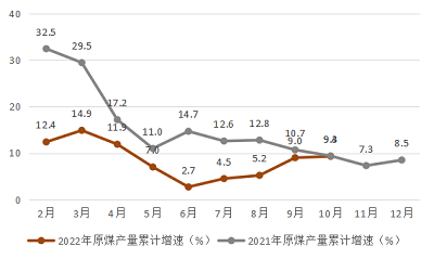 1-10月,在电煤保供需求和供给总体偏紧双重因素影响下,原煤生产增速稳步提高,规模以上工业原煤产量5275.80万吨,同比增长9.3%。较前三季度增速提高0.3个百分点,增速较全国(10.0%)低0.7个百分点,增速在全国23个有原煤产量的省份中排第10位。