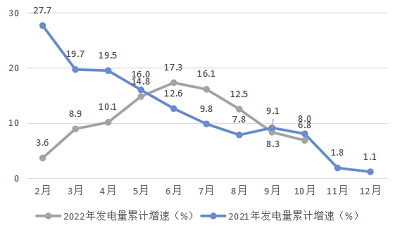 图1 规模以上工业发电量累计增速(%)