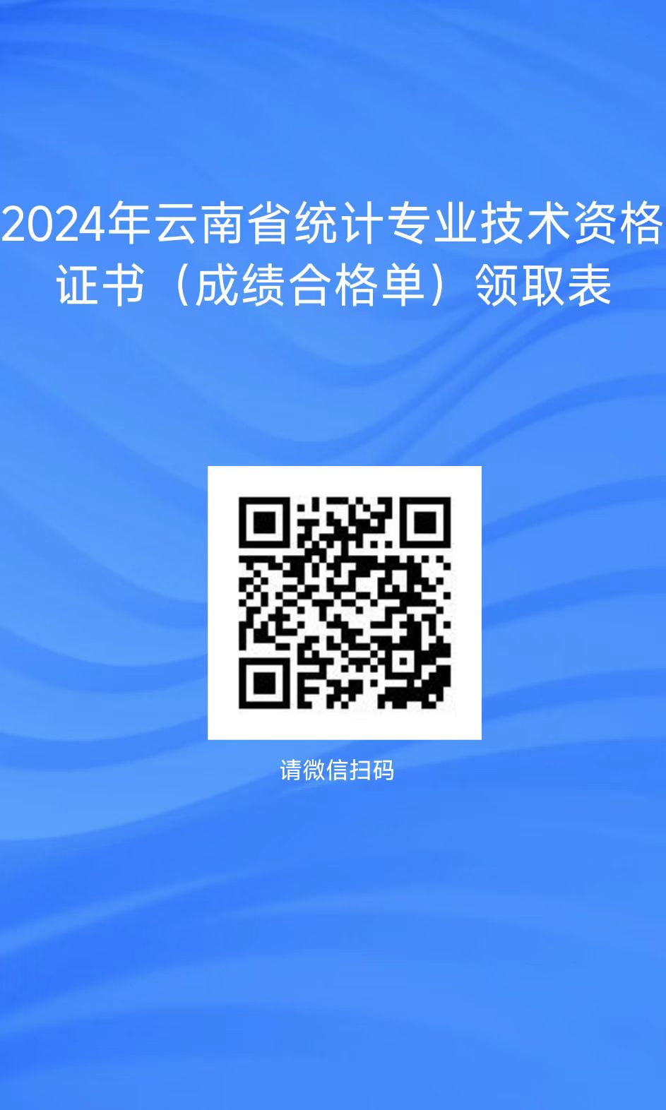 咨询电话:0871-65108477,举报电话:0871-65108424。证书领取方式分为邮寄到付领取和现场领取两种,即日起至2024年12月31日,请合格考生微信扫码填写《2024年云南省统计专业技术资格证书(成绩合格单)领取表》。