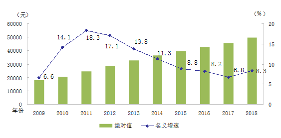 2018 年全国城镇私营单位就业人员年平均工资为 49575 元,比上年增加 3814 元,名义增长 8.3% ,增速比 2017 年提高 1.5 个百分点。扣除价格因素, 2018 年全国城镇私营单位就业人员年平均工资实际增长 6.1% 。