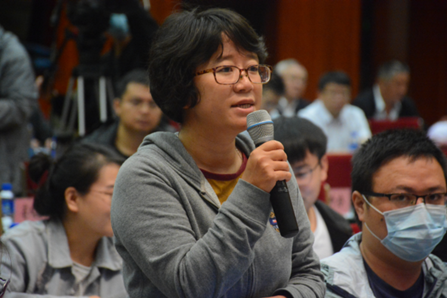 新华社记者现场提问 ( 记者 赵嘉 摄影 )