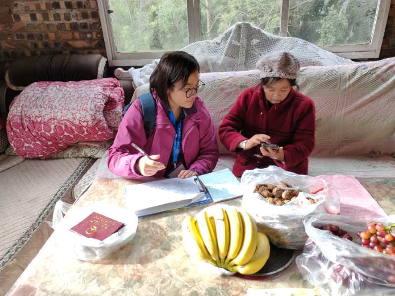 吴佳怡同志作为昭通市工商联派遣驻镇雄县罗坎镇纸槽村作战小分队工作队员,同时也担任纸槽村人口普查工作的普查员。她负责第二普查小区瓦房村民小组,因山高坡陡,施工难度较大,大部分路基不稳,公路地面无法硬化,入秋以来受天气影响,更是一路泥泞,车辆根本无法通行,从村公所到瓦房村民组需步行两个多小时,一不小心就会陷足。吴佳怡同志坚持入户普查工作,力求“不缺一人,不漏一户”。成功完成了瓦房村民组的入户摸底工作。每次入户工作的时候老百姓都会说同志你们辛苦了,然而吴佳怡同志总是说:“不辛苦,这是我们应该做的,人口普查十年一次,意义重大,我们都应该贡献自己的力量,你们把信息如实告诉我们就是对我们工作,对普查工作最大的支持。”