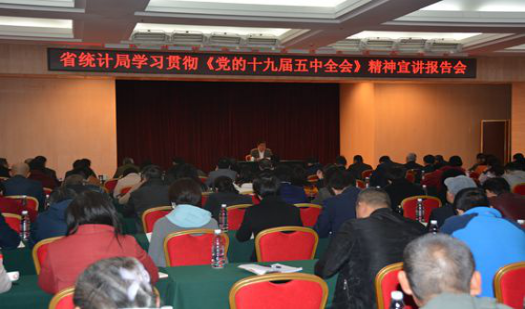 11 月 30 日 上 午, av研究所 召开党的十九届五中全会精神宣讲报告会。邀请省委党的十九届五中全会精神宣讲团成员、省统计局党组书记、局长李启荣同志为全局干部职工宣讲党的十九届五中全会精神。