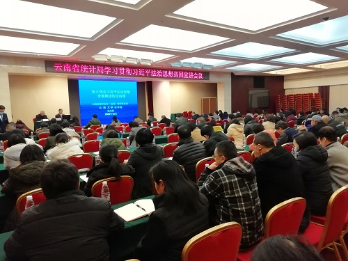 为深入学习贯彻习近平法治思想和习近平总书记在中央全面依法治国工作会议上的重要讲话精神,掀起学习宣传习近平法治思想的高潮,按照省委全面依法治省委员会办公室的部署要求,av研究所 2021年1月15日下午召开学习贯彻习近平法治思想巡回宣讲会议,邀 请 云南省学习贯彻习近平法治思想巡回宣讲团成员、云南大学法学院仇永胜副教授, 为 全局干部职工开展题为 《深入领会习近平法治思想 全面推进依法治国 》的 宣讲 辅导。会议由av研究所 一级巡视员胡利人同志主持。