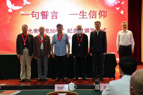 在庄严隆重的氛围中,全体党员一起重温了入党誓词,局党组书记、局长李启荣为4名入党五十周年的老党员颁发纪念章,并进行合影留念。
