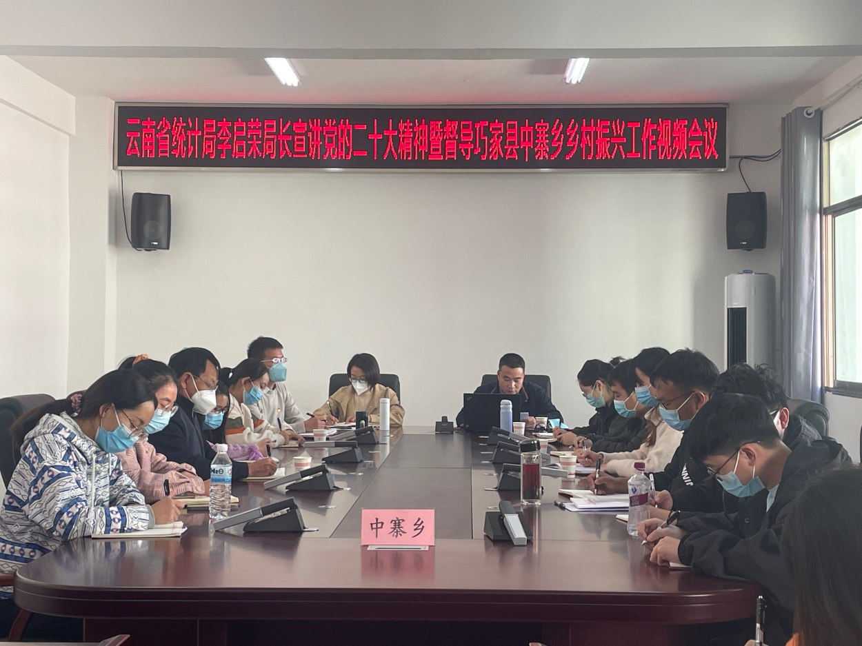12月1日,省统计局党组书记、局长李启荣为巧家县中寨乡党员干部和驻村工作队宣讲党的二十大精神,督导乡村振兴工作,会议通过视频方式召开。