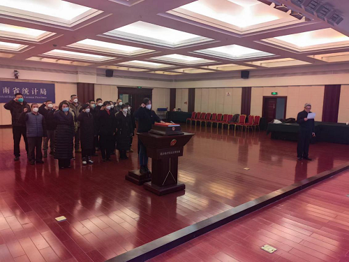 2022年12月29日,召集2022年新晋升的处级干部、二级巡视员和新进入人员共17名同志在四楼一会议室进行宪法宣誓。工业处处长徐薇薇同志领誓,其他同志跟诵誓词,铮铮誓言,字字千钧,许下忠于宪法、忠于祖国、忠于人民的庄严承诺。