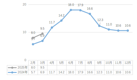3月,火力发电量68.07亿千瓦时,同比增长7.5%;水力发电量174.50亿千瓦时,同比增长24.5%;风力发电量50.72亿千瓦时,同比下降6.5%;太阳能发电量30.88亿千瓦时,同比增长14.8%。