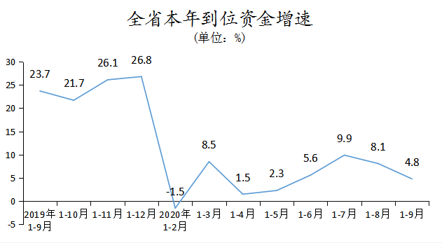 1-9月,房地产开发企业到位资金2707.82亿元,同比增长4.8%,增速较1-8月回落3.3个百分点。其中,国内贷款195.07亿元,同比增长-8.4%;利用外资11.70亿元,同比增长-24.1%;自筹资金808.27亿元,同比增长-1.8%;定金及预收款881.0亿元,同比增长1.2%;个人按揭贷款655.92亿元,同比增长22.5%。