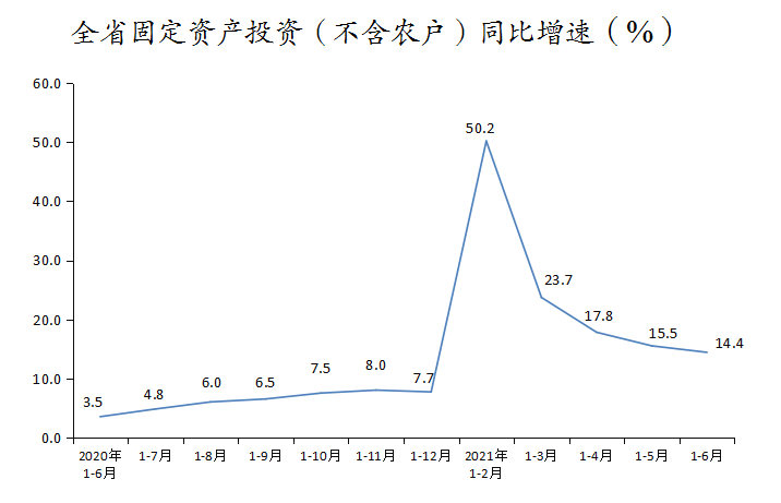 上半年,全省固定资产投资同比增长14.4%,比2019年上半年增长18.3%,两年平均增速为8.8%。其中,民间投资增长21.7%。
