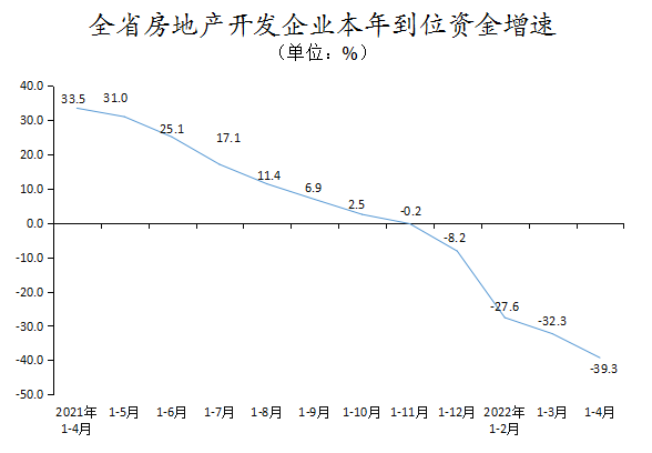 1-4月,全省房地产开发投资1041.81亿元,同比下降19.0%;其中,住宅投资783.98亿元,同比下降16.5%。