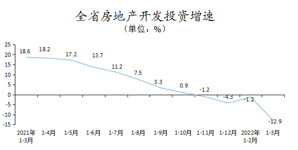 1-3月,全省房地产开发投资774.99亿元,同比下降12.9%;其中,住宅投资580.29亿元,同比下降11.4%。