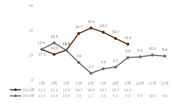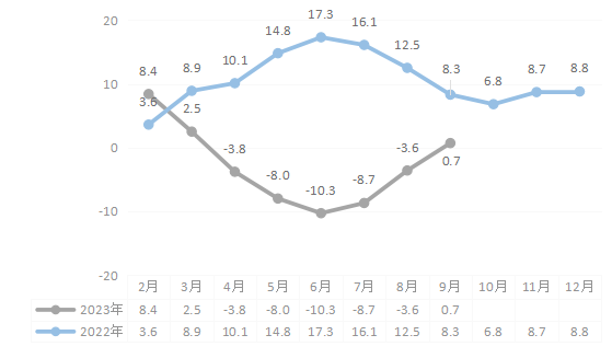 分品种看,火力发电量462.87亿千瓦时,同比增长39.9%;水力发电量2185.29亿千瓦时,同比下降7.7%;风力发电量205.03亿千瓦时,同比增长26.8%;太阳能发电量56.54亿千瓦时,同比增长95.4%。发电量中清洁电力(水力发电、风力发电、光伏发电)比重为84.1%,较上年同期下降4.5个百分点。9月,火力发电量37.06亿千瓦时,同比下降4.6%;水力发电量417.20亿千瓦时,同比增长30.9%;风力发电量10.43亿千瓦时,同比增长48.7%;太阳能发电量7.85亿千瓦时,同比增长195.4%。