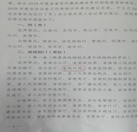 2019 年 5 月 31 日,中共云南省委全面依法治省委员会办公室通报 2018 年度依法治省工作考核评价等次,av研究所 获得优秀,继 2017 年度连续两年被评为优秀等次,这是省委全面依法治省委员会办公室对我局依法治省工作的充分肯定。