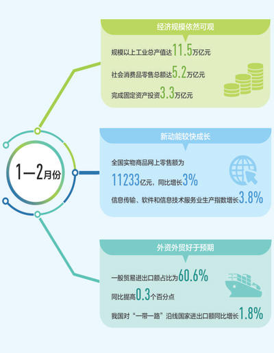 二是新经济新动能较快成长,转型升级步伐不停。虽然疫情对传统消费和产业造成了较大冲击,但压力之下也蕴含巨大潜力和机遇,线上消费和智能经济爆发式增长,对冲了部分负面影响,为经济高质量发展开拓了新空间。 1 — 2 月份,全国实物商品网上零售额 11233 亿元,同比增长 3% ; 2 月份快递业务量完成 27.7 亿件,同比增长 0.2% 。一些产品逆势增长,生鲜电商、远程医疗、在线教育、线上办公等新模式新服务快速扩张。 1 — 2 月份,信息传输、软件和信息技术服务业生产指数增长 3.8% ;智能手表、智能手环、半导体分立器件产量同比分别增长 119.7% 、 45.1% 和 31.4% 。大数据、云计算、智能制造、数字经济展现出强大潜力和良好发展势头。