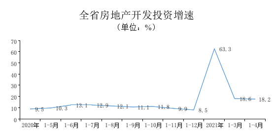 1-4 月 , 全省房地产开发投资 1285.94 亿元 , 同比增长 18.2 % ; 比 20 19 年 1-4 月 增长 29.4% , 两年平均增长 13.8% 。 其中 , 住宅投资 938.85 亿元 , 同比增长 19.1 %。