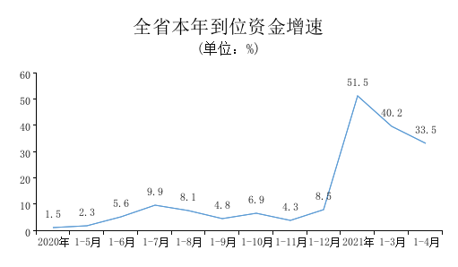 1-4 月 , 房地产开发企业到位资金 1253.52 亿元 , 同比增长 33.5 % ; 比 2019 年 1-4 月增长 35.5%, 两年平均增长 16.4% 。 其中 , 国内贷款 86.84 亿元 , 同比增长 23.2 %; 利用外资 2.23 亿元 , 同比 增长 - 4.0 %; 自筹资金 365.54 亿元 , 同比增长 18.4 %; 定金及预收款 379.99 亿元 , 同比增长 41.6 %; 个人按揭贷款 328.27 亿元 , 同比增长 48.3 %。