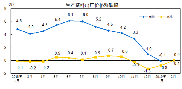 2019 年 2 月工业生产者价格主要数据