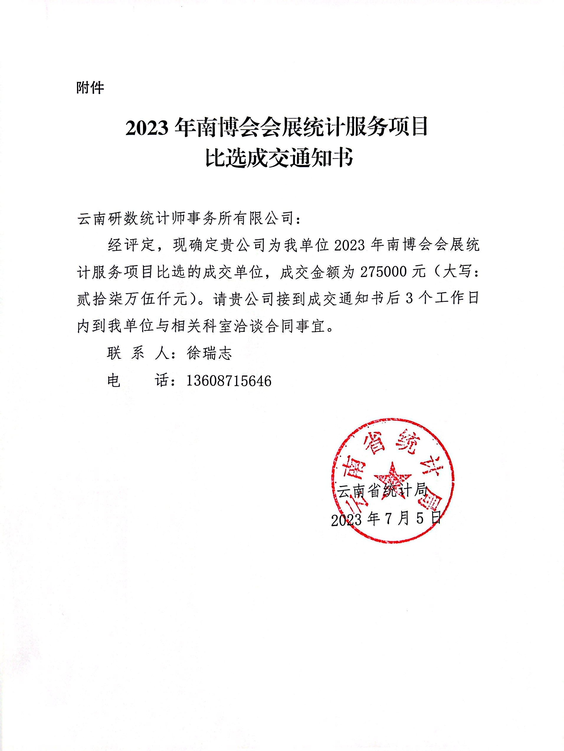 云南省 统计局 2023年南博会会展统计服务 采购小组